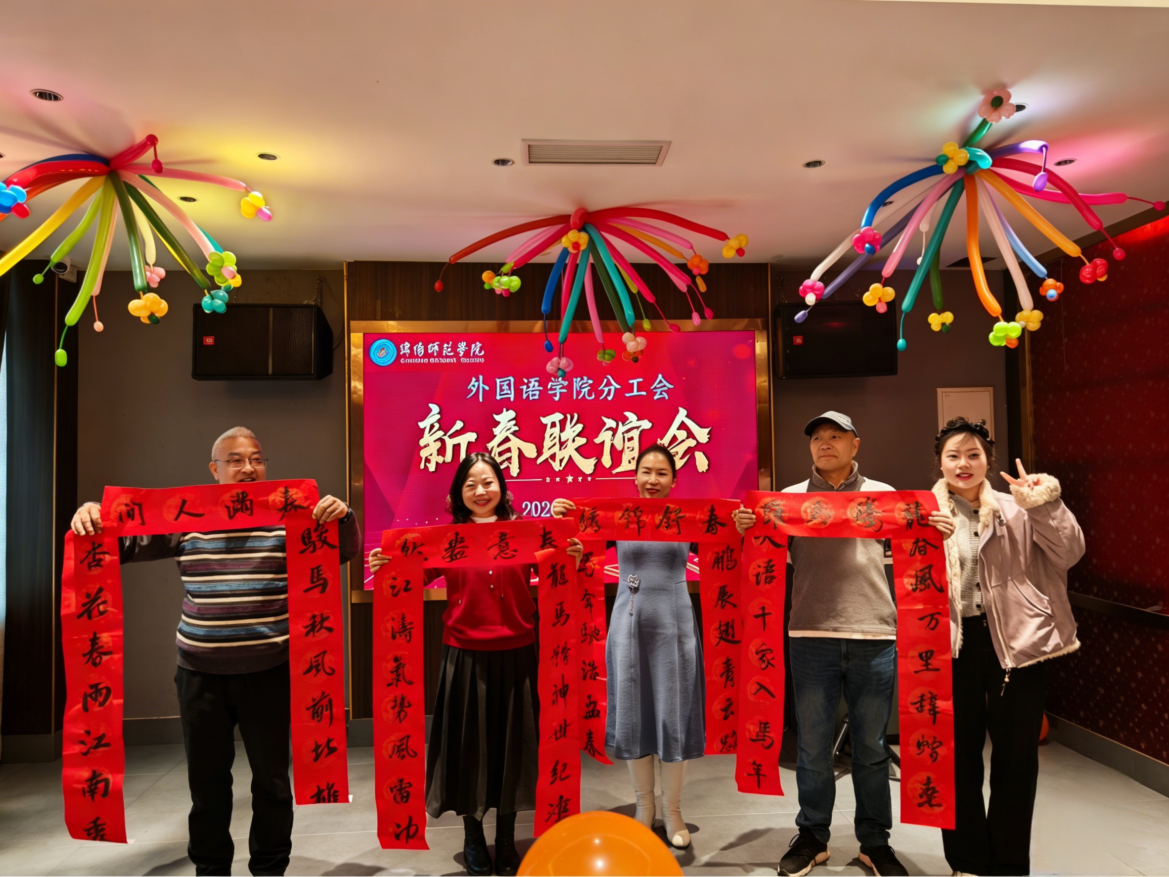 冬去春来添新岁,凝心聚力启新程。为感谢全体教职工一年来的辛勤付出,传承尊师重教优良传统,营造温馨和谐的学院氛围,2026年1月14日下午,外国语学院分工会举办了“语通中外凝心谱华章 辞旧迎新聚力启新程”新春联谊会暨离退休教职工荣休仪式。分工会全体会员齐聚一堂,在温馨喜悦的氛围中共迎新春、致敬奉献、畅叙未来。